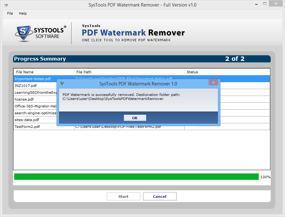 PDF files present on Windows Operating System can be selected to delete watermark. As PDF watermark remover is a window based tool operatable with all versions of Windows including Windows 8. It permits users to perform effortless software download.